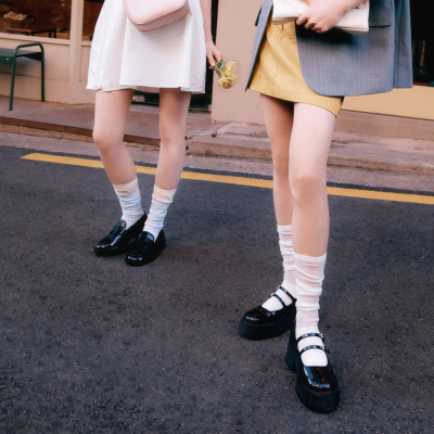 Bold silhouettes meet all-day comfort. Sculptural heels, sleek wedges, and lightweight flats in soft pinks and glossy neutrals — finished with playful strawberry details for effortless spring style.